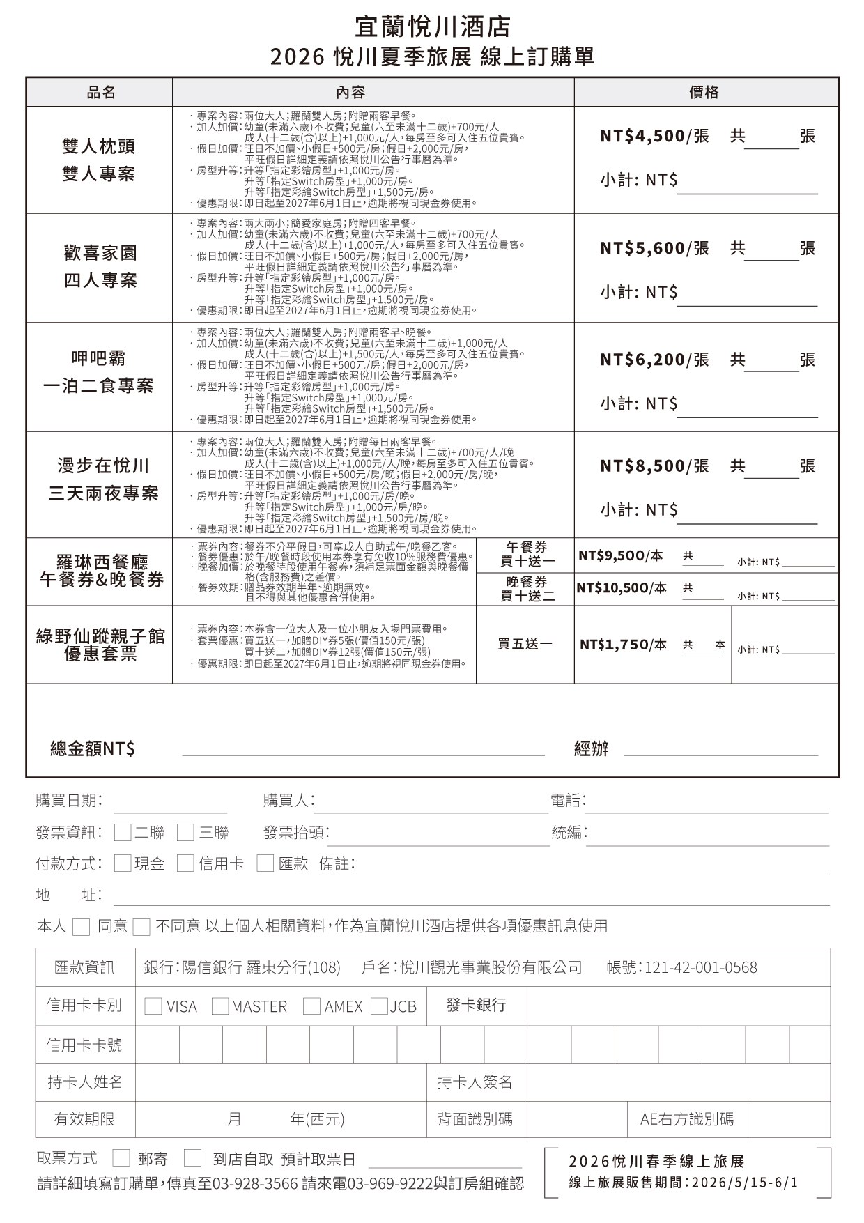 - 詳細使用說明請參照票券背面說明,未盡詳述之處,以現場規定為主,悅川酒店保有專案活動解釋權。